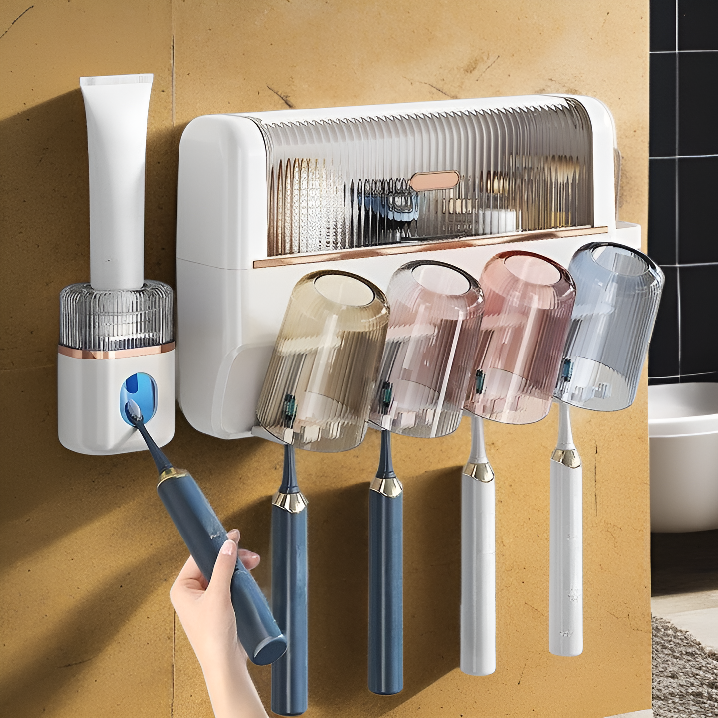 ● Uchwyt ścienny na szczoteczkę do zębów pozwala na wygodne przechowywanie szczoteczek, oszczędzając miejsce na umywalce i utrzymując porządek w łazience.