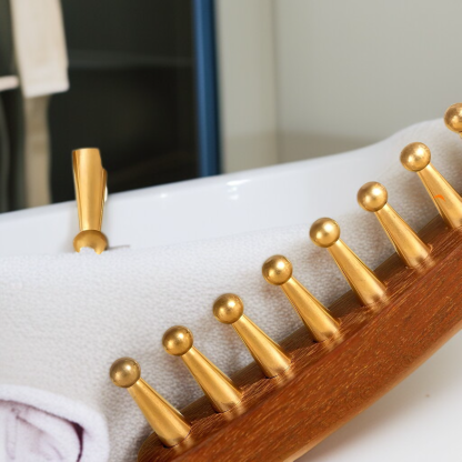 ● Masaż głowy grzebieniem z mosiądzu skutecznie pobudza krążenie krwi, wspierając zdrowy wzrost włosów i relaksując skórę głowy po ciężkim dniu.